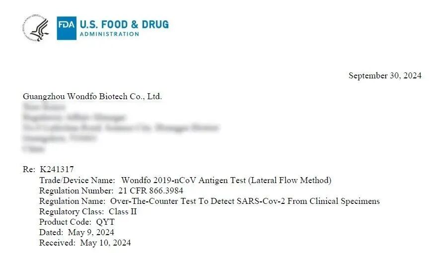万孚生物新冠家庭检测产品获美国 FDA 510(k) 许可
