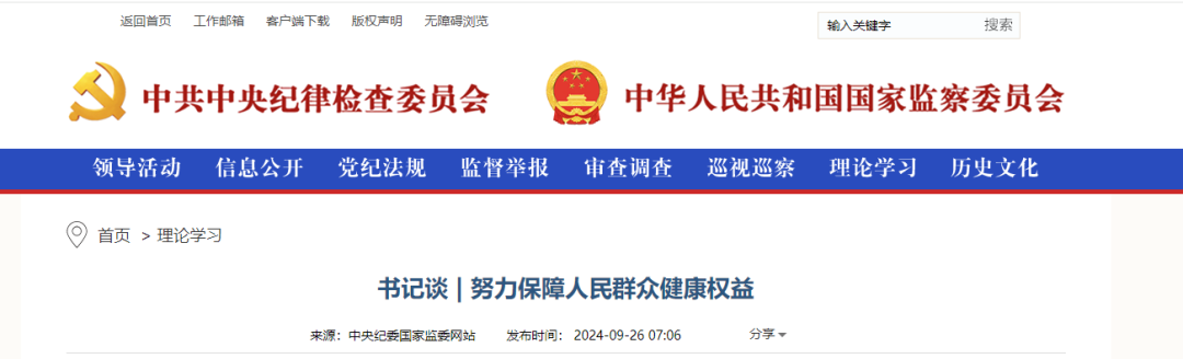 9 月 26 日,中央纪委发布文章《书记谈 | 努力保障人民群众健康权益》,文章指出:权力寻租、欺诈骗保、靠医吃医等问题仍时有发生。对这些突出问题,必须以永远在路上的坚韧和执着,精准发力、重拳出击,不断净化医药领域政治生态和行业生态 。