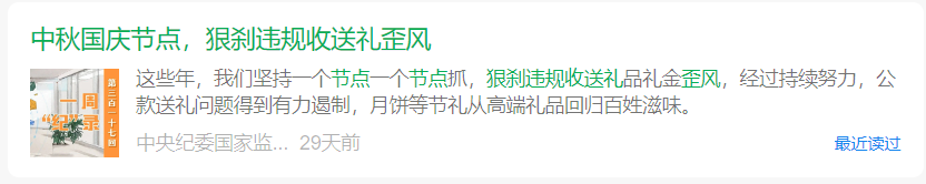 9月中旬,中纪委国家监委网站”官方微信公众号发布的《中秋国庆节点,狠刹违规收送礼歪风》一文中提到了以讲课费、课题费、咨询费等名义变相收送礼的现象。