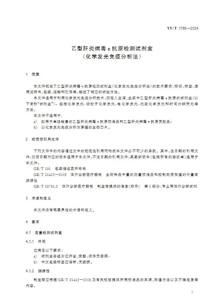 国家药监局发布行业标准《乙型肝炎病毒e抗原检测试剂盒(化学发光免疫分析法)》YY/T 1786—2024,该标准将于2025年7月20日实施!
