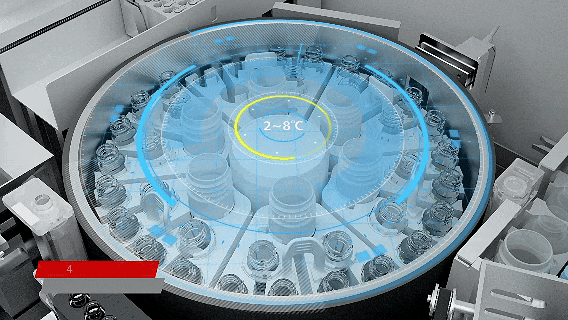 关机后试剂仓恒温2-8°C,试剂无需人工转移至冰箱,提升试剂稳定性。仪器可实时统计试剂周期用量,辅助预测试剂用量,提示用户及时补充试剂。