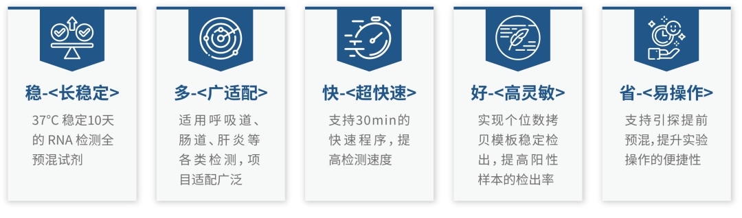 为顺应行业发展趋势解决这一难题,瀚海新酶集中力量研发全预混试剂,在 Taq DNA 聚合酶、热启动逆转录酶、反应体系、耗材等方面,进行充分验证和优化: